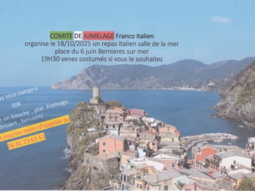 ️ Le comité de Jumelage Bernières Arcade vous convie à leur diner italien le samedi 18 octobre 2025 à partir de 19h30 Salle de la mer Le ...