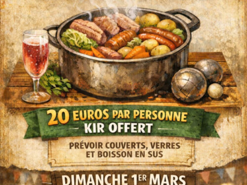 L'association de la Pétanque Berniéraise vous propose de venir déguster une grande potée (prévoir couverts, verre) le dimanche 1er mars ...