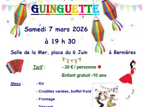 Le comité des Fêtes vous invite à participer à leur soirée GUINGUETTE Le Samedi 7 mars 2026 A 19 h 30 Salle de la mer - place du 6 ...