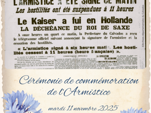 La municipalité de Bernières-sur-Mer vous convie à la cérémonie du souvenir à l’occasion du 107ème anniversaire de l’Armistice du 11 novembre ...