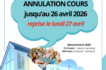 Les cours de sport santé, dispensés par Céline, au Club House du Tennis, sont annulés jusqu'au 07 avril inclus. Ils reprendront après les vacances de printemps le lundi 27 avril 2026. Merci pour votre compréhension. Merci de votre compréhension. ...