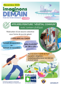 Le Département du Calvados, en partenariat avec le réseau des bibliothèques organise en ce mois de novembre la première édition du festival Imaginons Demain : une manifestation inédite, gratuite et ouverte à tous, autour du thème de la transition écologique. Pendant un mois, 60 artistes, auteurs, scientifiques et journalistes iront à la rencontre des habitants dans une trentaine de bibliothèques du territoire.