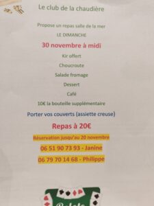 Réservation avant le 20 novembre au 06.51.90.73.93 ou 06.79.70.14.68
